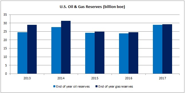 Oil reserves for the largest U.S. companies increased by 21% in 2017